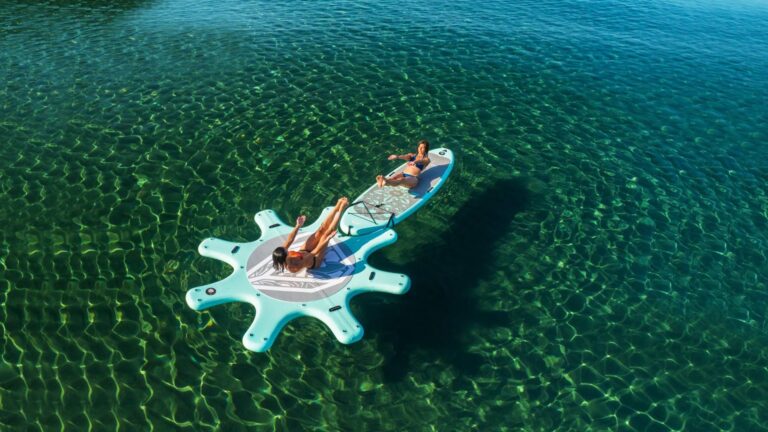 Yoga-Übungen auf einem beweglichen Untergrund erfordert eine besondere Balance. Aqua Marina nahm sich dies zu Herzen und kreierte die Yoga Line. Das Dyhana oder Peace eignen sich ideal für Yoga Übungen, der Yoga Dock ermöglicht es, dass man nicht alleine trainieren muss. Der Dock kann bis zu 8 Yoga SUPs aufnehmen und bietet für einen Trainer eine Podiumsposition. Diesen Sport auf dem Stand up Paddle Board auszuführen, ermöglicht es, aus dem Studio oder der Sporthalle herauszukommen, um in Harmonie mit der Natur zu trainieren und noch mehr Wohlbefinden zu verspüren.