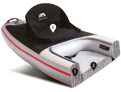 Die Doppelkammer Konstruktion wurde taktisch in das Cascade verbaut und bietet sowohl die Standfläche bei Nutzung als SUP als auch das Cockpit bei Nutzung als Kajak